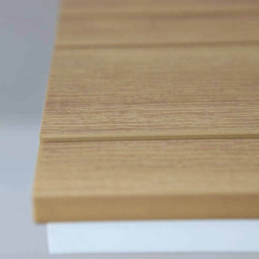 Casa Fiora modern square outdoor bistro table with a wood-look top and a single pedestal base